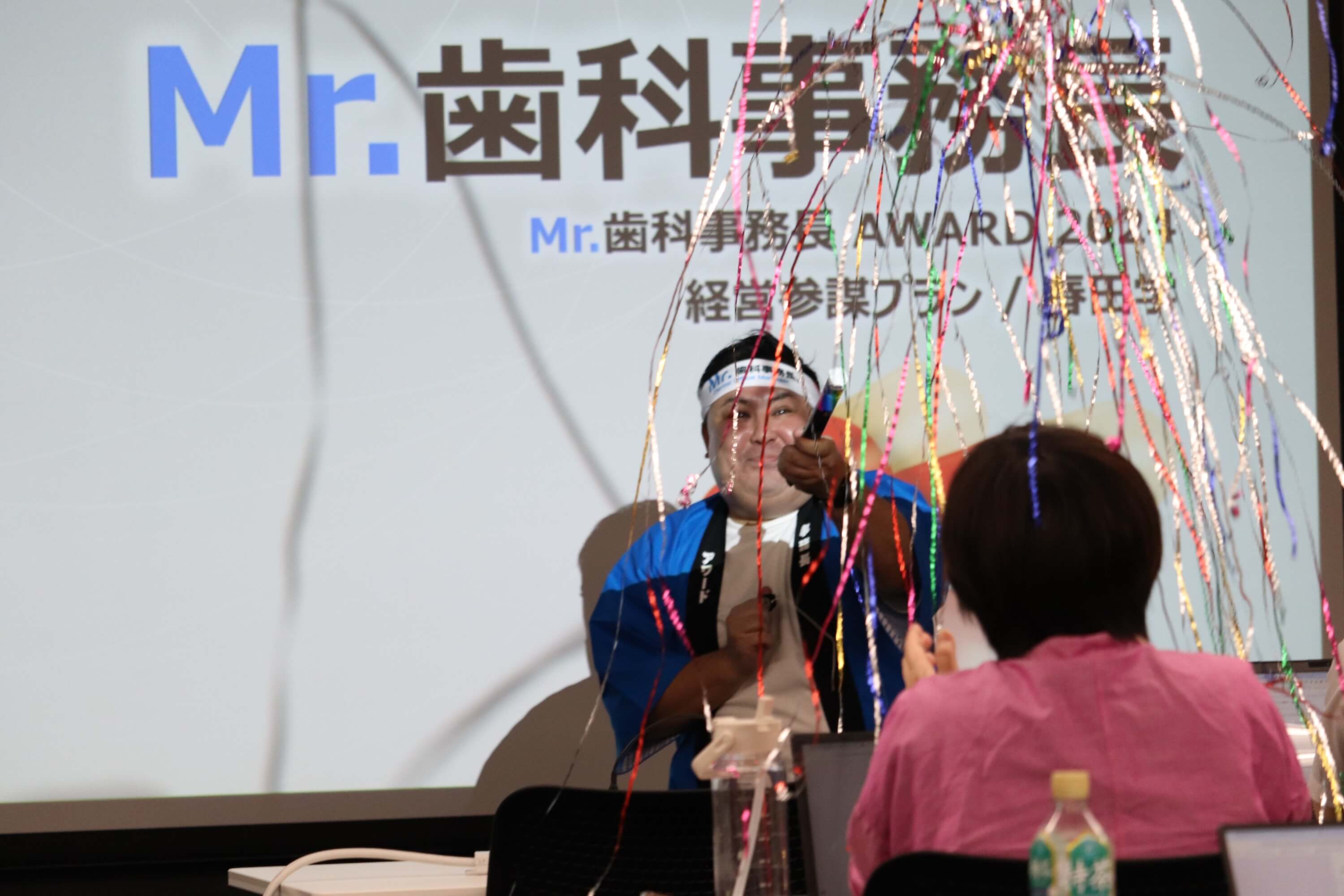 Mr.歯科事務長アワードとは、一年間のサポートから選りすぐりの事例を一人15分で発表し、参加者全員の評価でMVPを決定する、年に一度のビッグイベントです。今年は新卒社員も含め、30名の事務長が発表をいたしました。